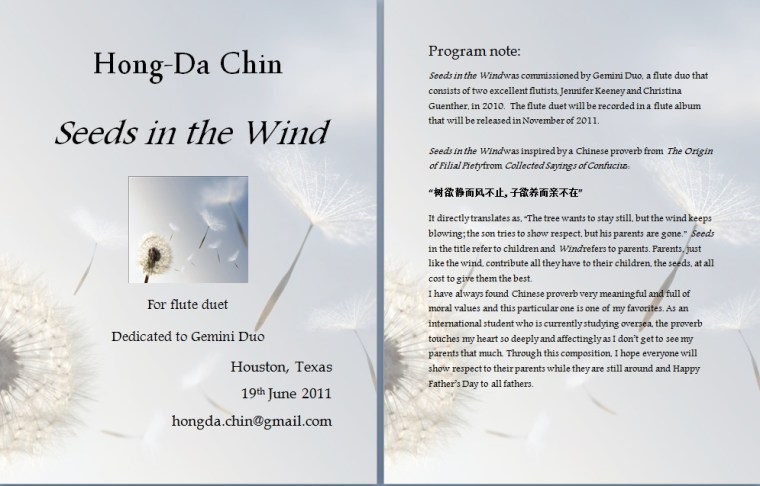 Seeds in the Wind (2011), flute duet, 7 minutes